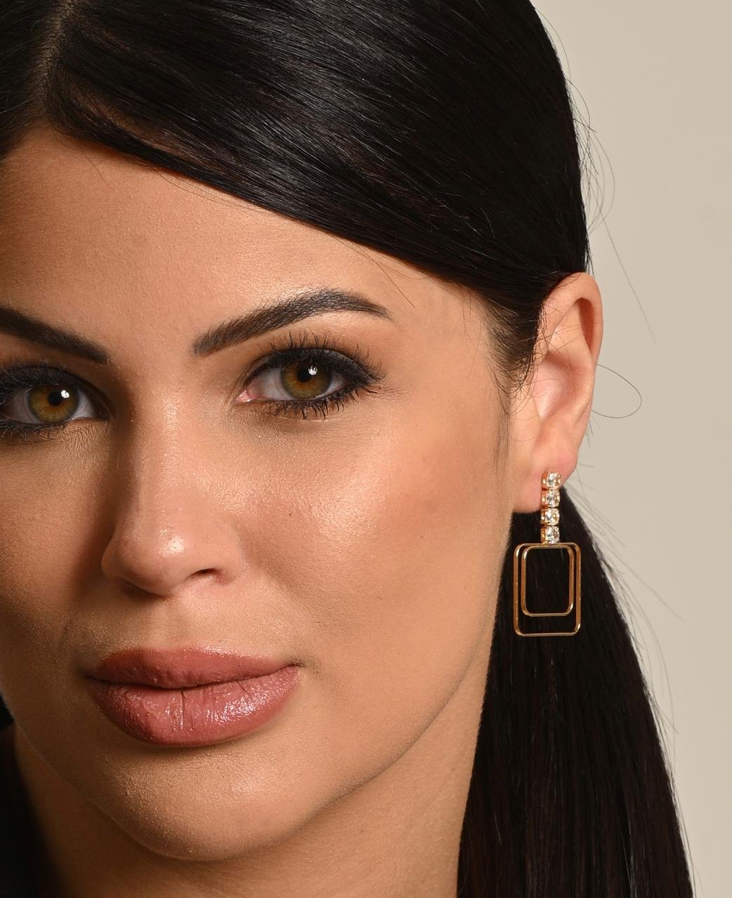 Brinco Zircônia Quadrado Duplo - Ouro 18k