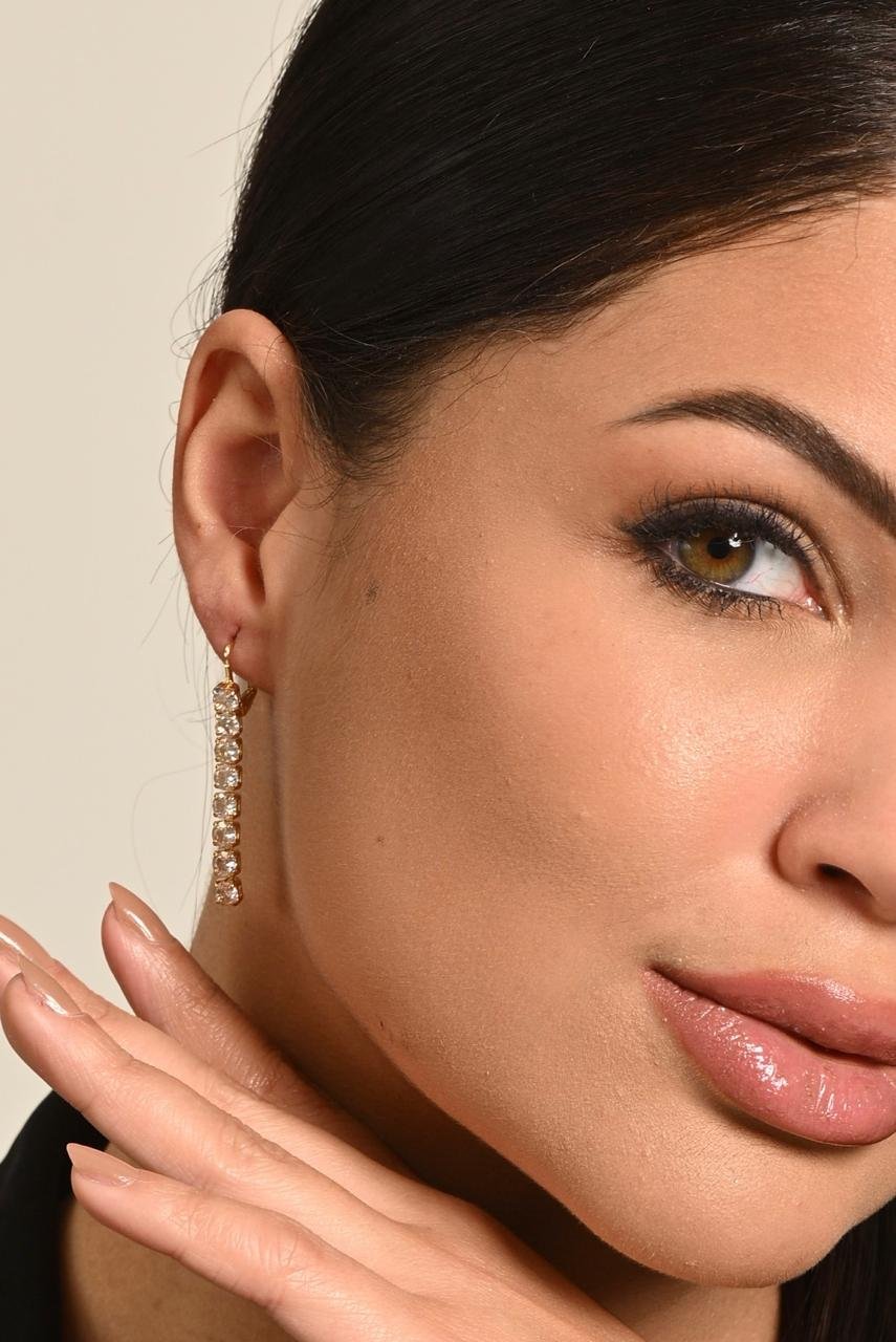 Brinco Zircônia Comprido 8 Pedras - Ouro 18k